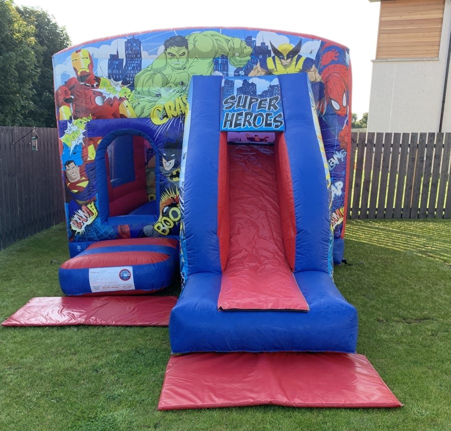 Our hero combi castle, is the perfect addition to any party with the popular design it looks great and is fantastic fun. Its combination of both a slide and castle means it’s one of the firm favorites.