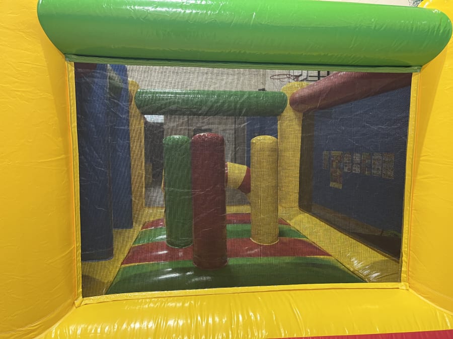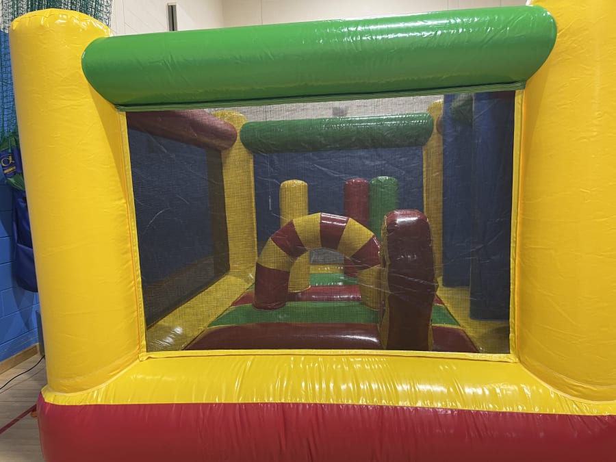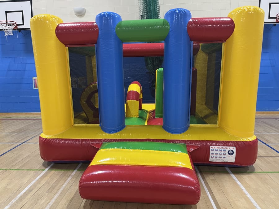 Our rainbow bouncy castle has the excitement of a bouncy castle and bish bash of an obstacle course.