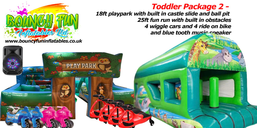 15ft square toddler play park includeing a small castle ball pit air jugglers and a small slide areas